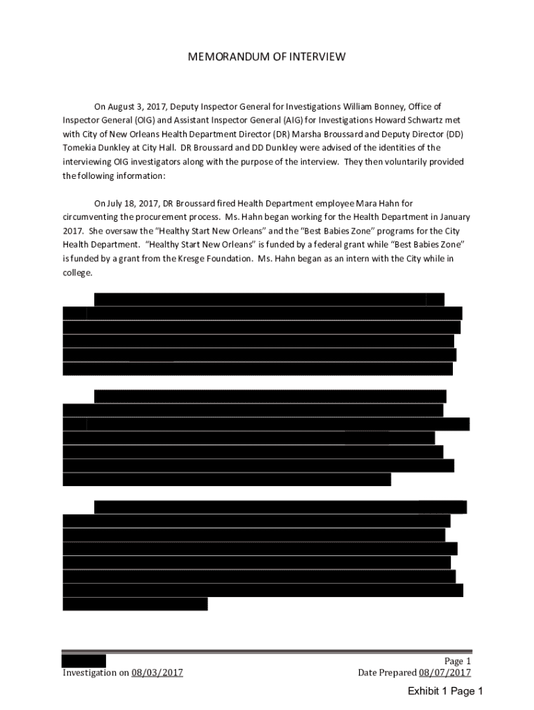 MEMORANDUM OF Interview August 3, 2017, Deputy Inspector General for Investigations William Donna, Office of Inspector General (OIL) and Assistant Inspector General (AIG) for Investigations Howard