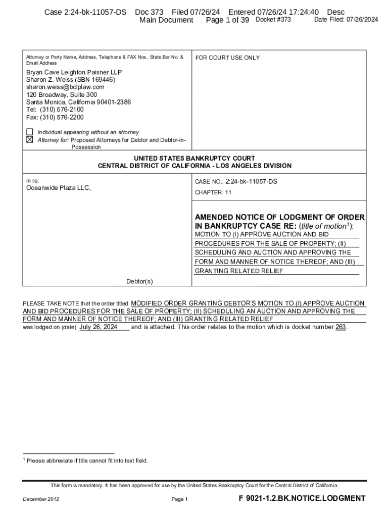 Case 2:24bk11057DSDoc 373 Filed 07/26/24 Entered 07/26/24 17:24:40 Desc Date Filed: 07/26/2024 Main Document Page 1 of 39 Docket #373Attorney or Party Name, Address, Telephone & FAX Nos., State Bar
