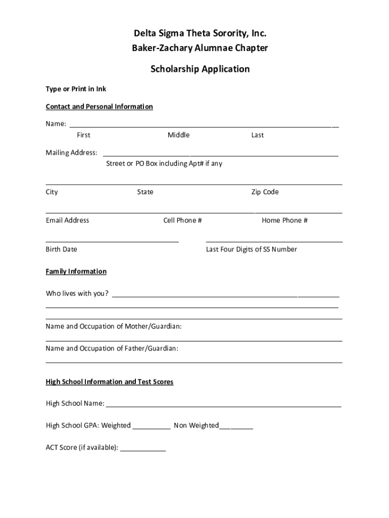 The baker-zachary alumnae chapterdelta sigma form can be filled out online or by hand following the instructions provided by Delta Sigma Theta Sorority headquarters.