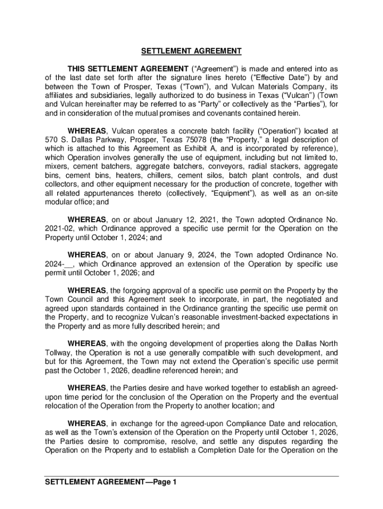 Get the free THIS SETTLEMENT AGREEMENT (Agreement) is made and entered into as