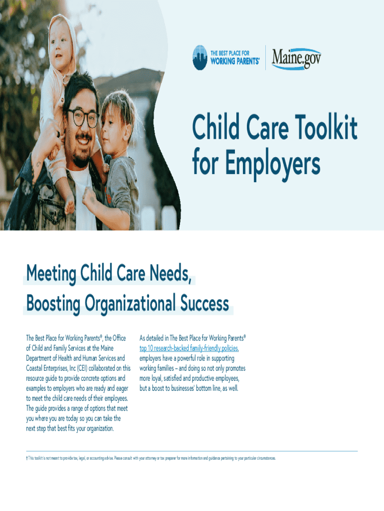 Child Care Toolkit for Employers Meeting Child Care Needs, Boosting Organizational Success The Best Place for Working Parents, the Office of Child and Family Services at the Maine Department of Health