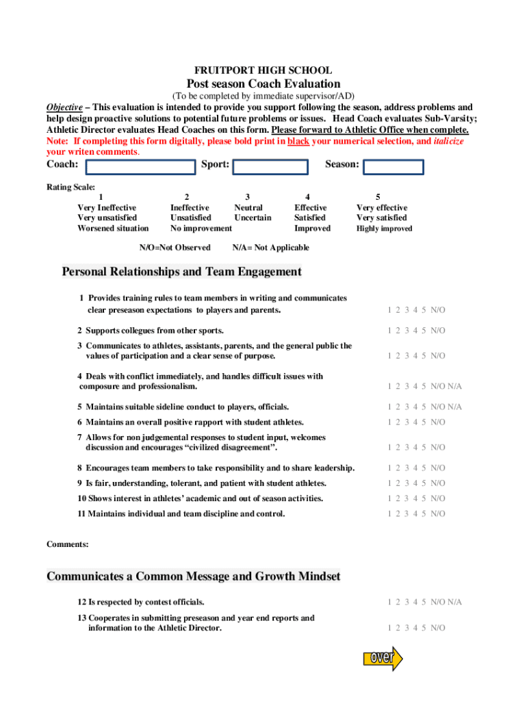 Edit your coaches season checklist-evaluation from form online