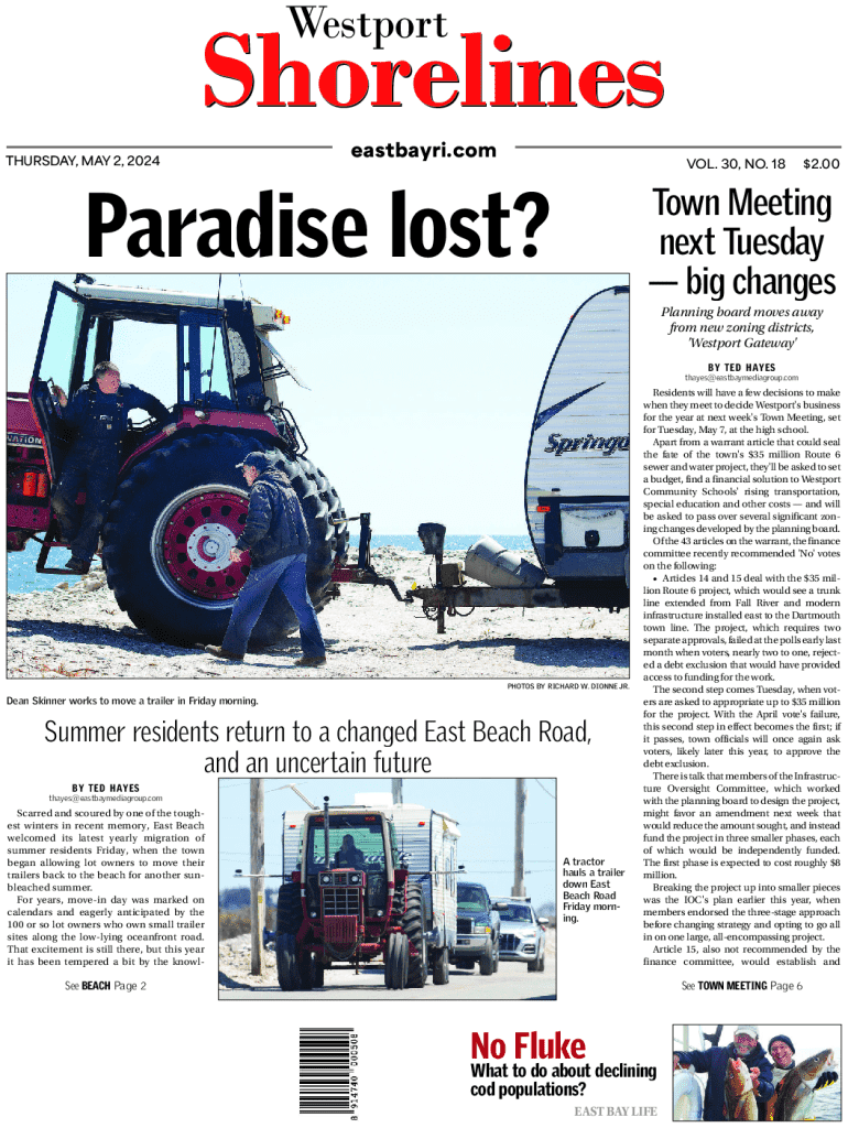 WestportShorelines THURSDAY, MAY 2, 2024eastbayri.comVOL. 30, NO. 18Paradise lost?$2.00Town Meeting next Tuesday big changes Planning board moves away from new zoning districts, \'Westport Gateway\'