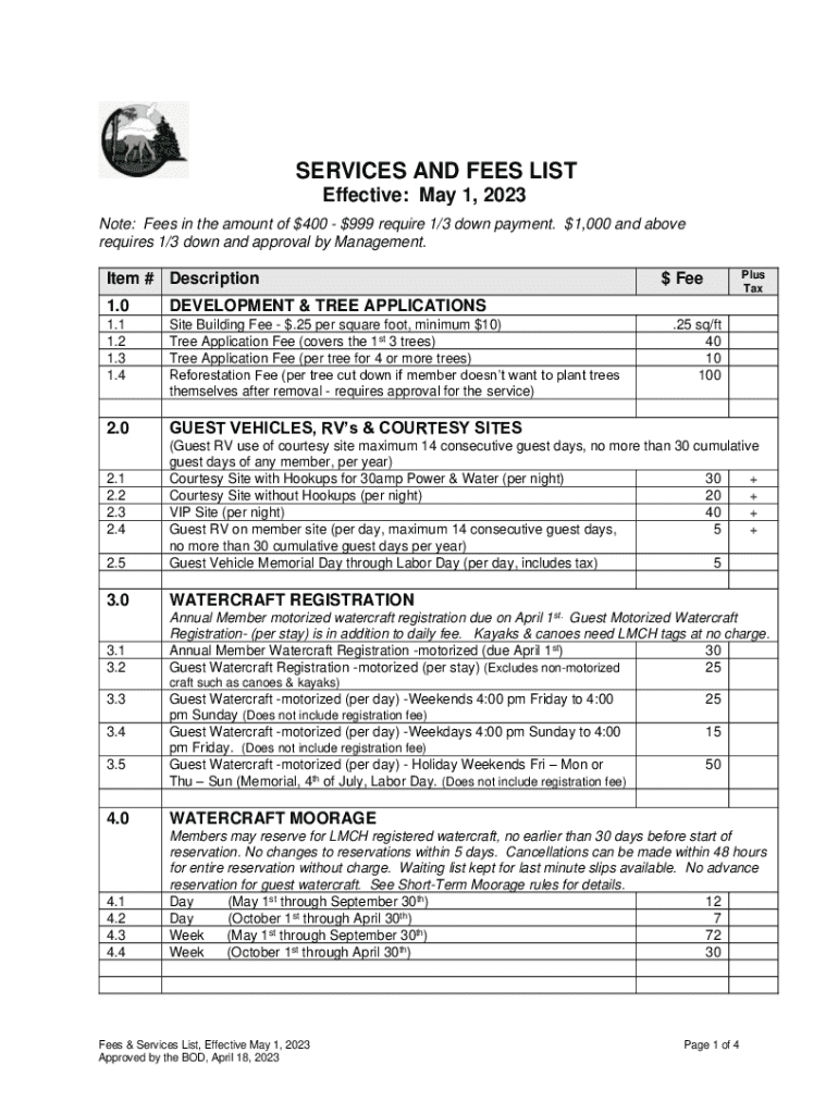 Get the free SERVICES AND FEES LIST Effective