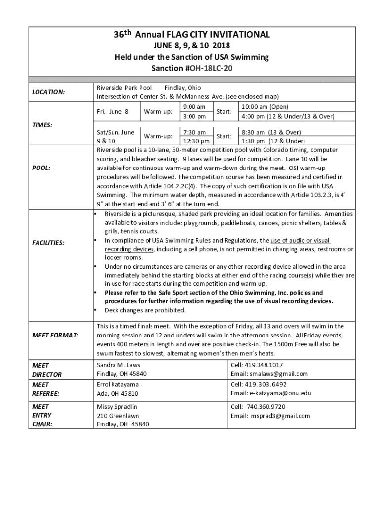 Sanction #OH18LC20LOCATION:TIMES:POOL:FACILITIES:MEET FORMAT:Riverside Park Pool