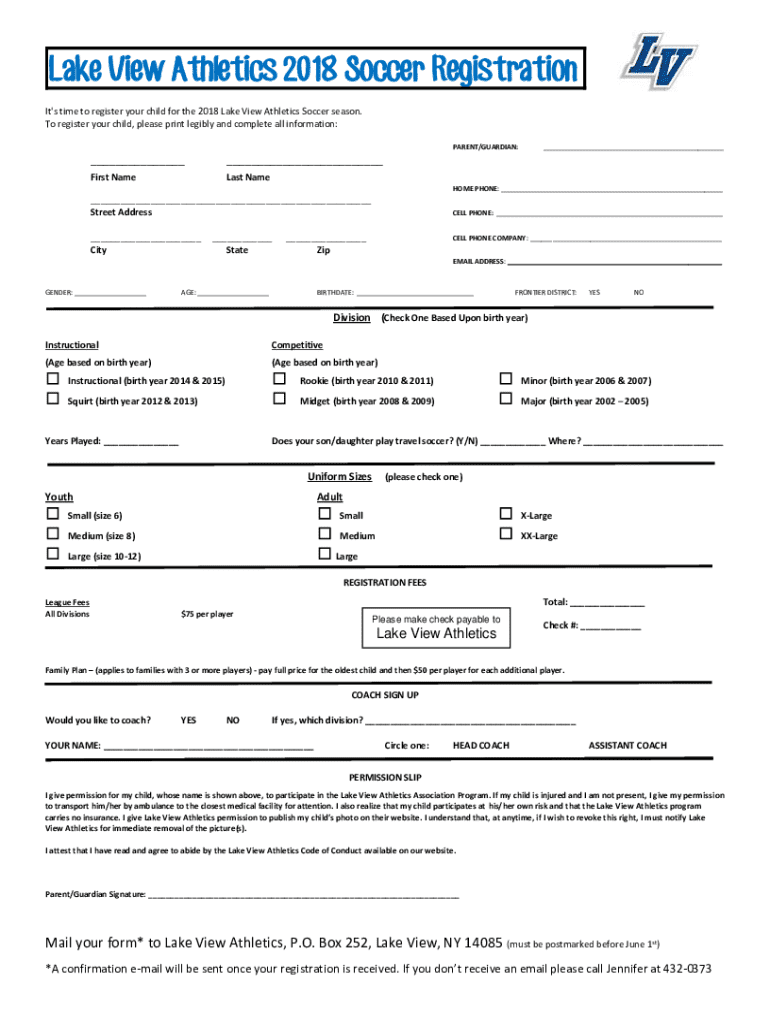 Lake View Athletics 2018 Soccer Registration