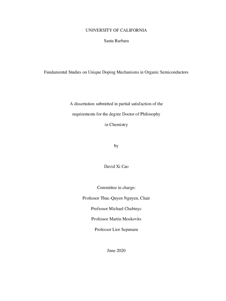 Santa BarbaraFundamental Studies on Unique Doping Mechanisms in Organic Semiconductors dissertation submitted in partial satisfaction of the