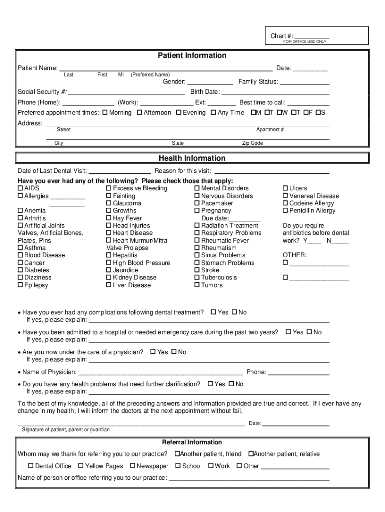 Birth Date:Phone (Home):(Work):Preferred appointment times:Morning: