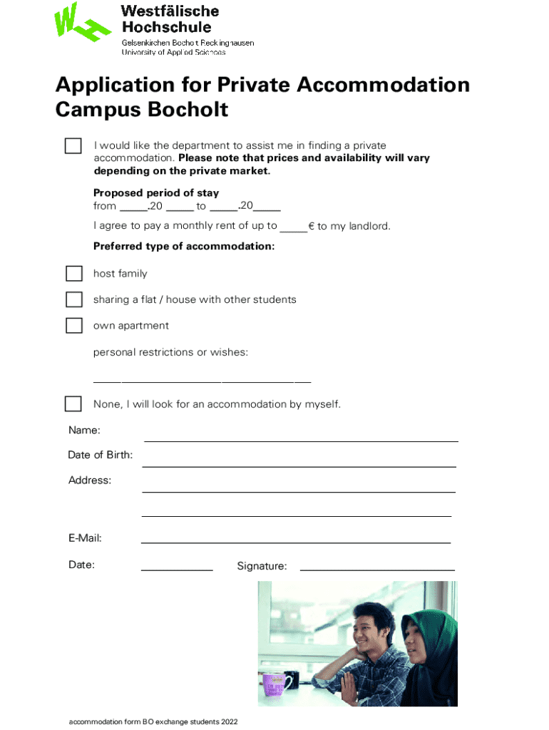 Get the free Accommodation Form Exchange Students Campus Bocholt