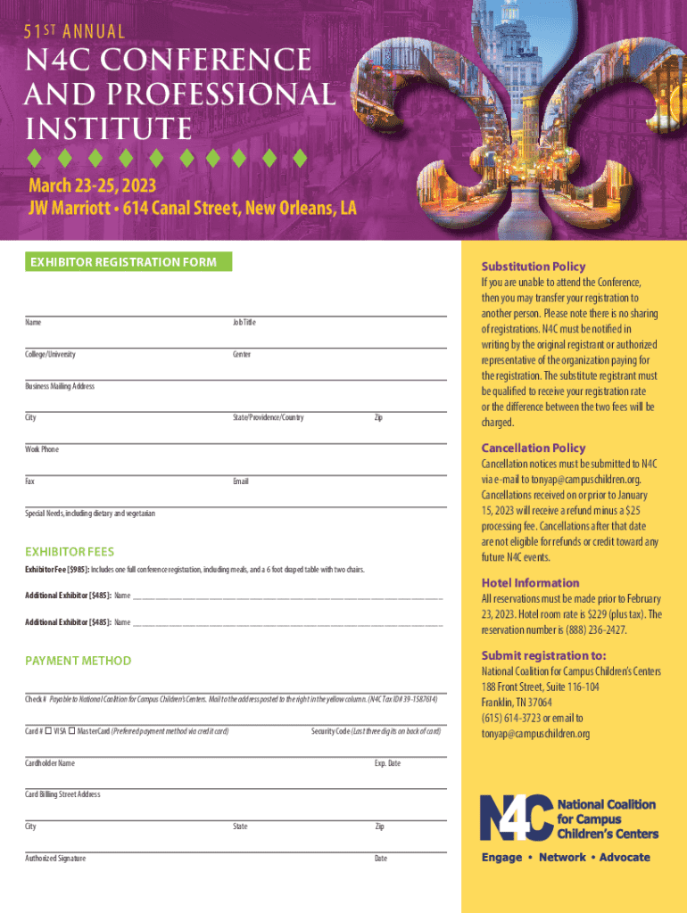 EXHIBITOR REGISTER ACTION & SPONSORSHIP FORM March 2325, 2023JW Marriott 614 Canal Street, New Orleans, LA51 S T ANNUALN4C CONFERENCE AND