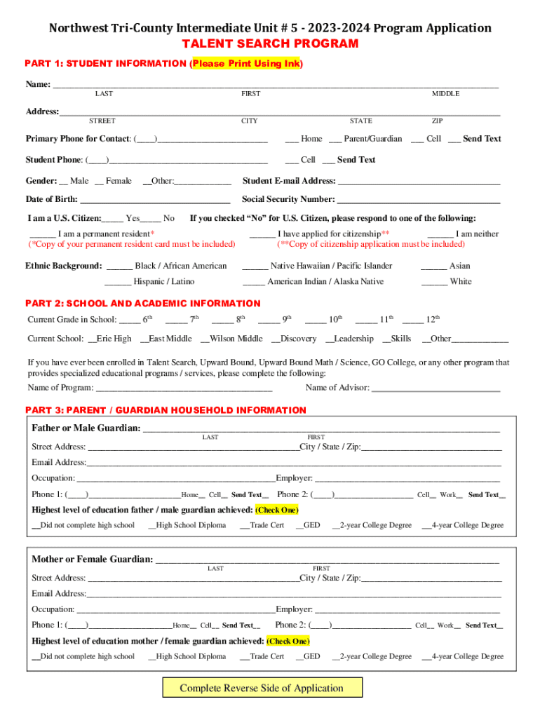 TALENT SEARCH PROGRAMMER 1: STUDENT INFORMATION (Please Print Using Ink)