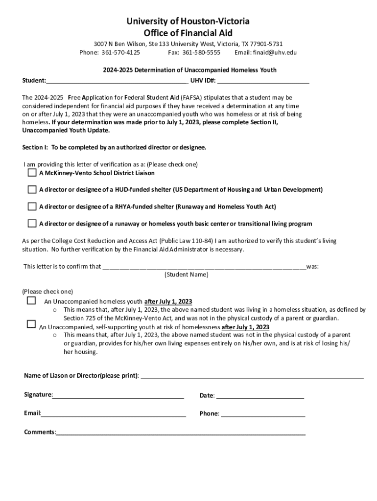 This document contains both information and form fields. To read information, use the Down Arrow from a form field. University of Houston Victoria Office of Financial Aid3007 N Ben Wilson, Ste 133