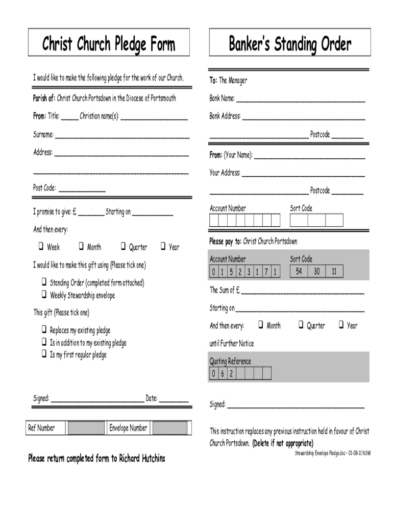 Get the free Christ Church Pledge Form Banker's Standing Order