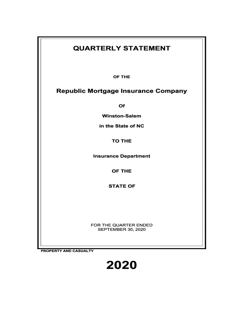 *28452202020100103* PROPERTY AND CASUALTY COMPANIES ASSOCIATION EDITIONQUARTERLY STATEMENT AS OF SEPTEMBER 30, 2020 OF THE CONDITION AND AFFAIRS OF THERepublic Mortgage Insurance Company NAIC Group