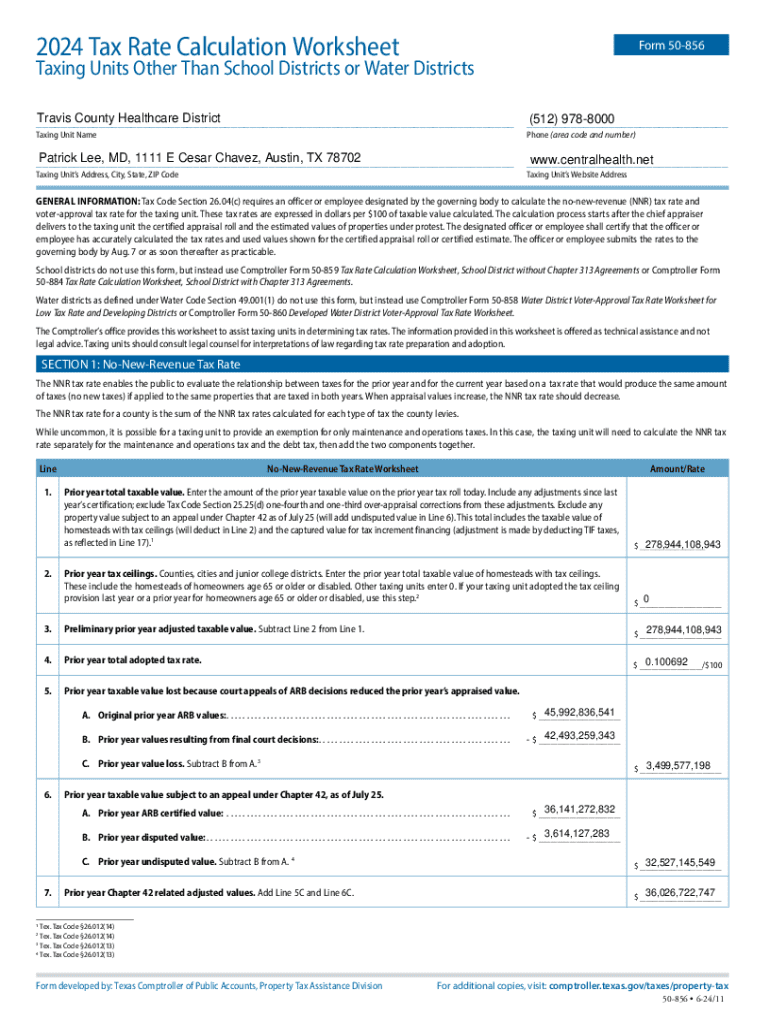 2024 Tax Rate Calculation WorksheetForm 50856Taxing Units Other Than School Districts or Water Districts