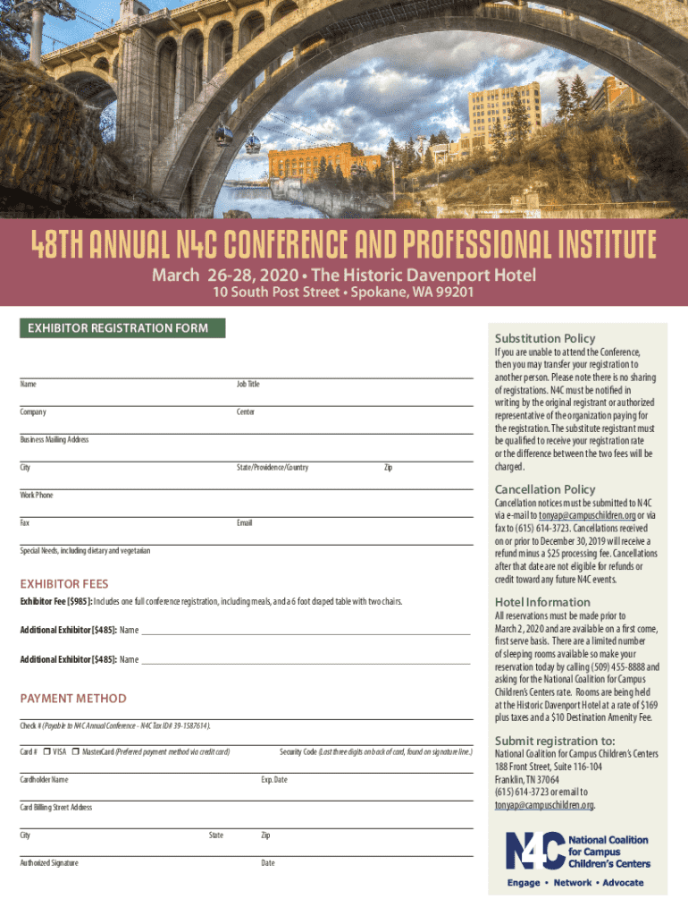 NATIONAL COALITION FOR CAMPUS CHILDRENS CENTERS48TH ANNUAL N4C CONFERENCE AND PROFESSIONAL INSTITUTE Thursday, March 26 Saturday, March 28, 2020 The Historic Davenport Hotel 10 South Post Street Spokane,