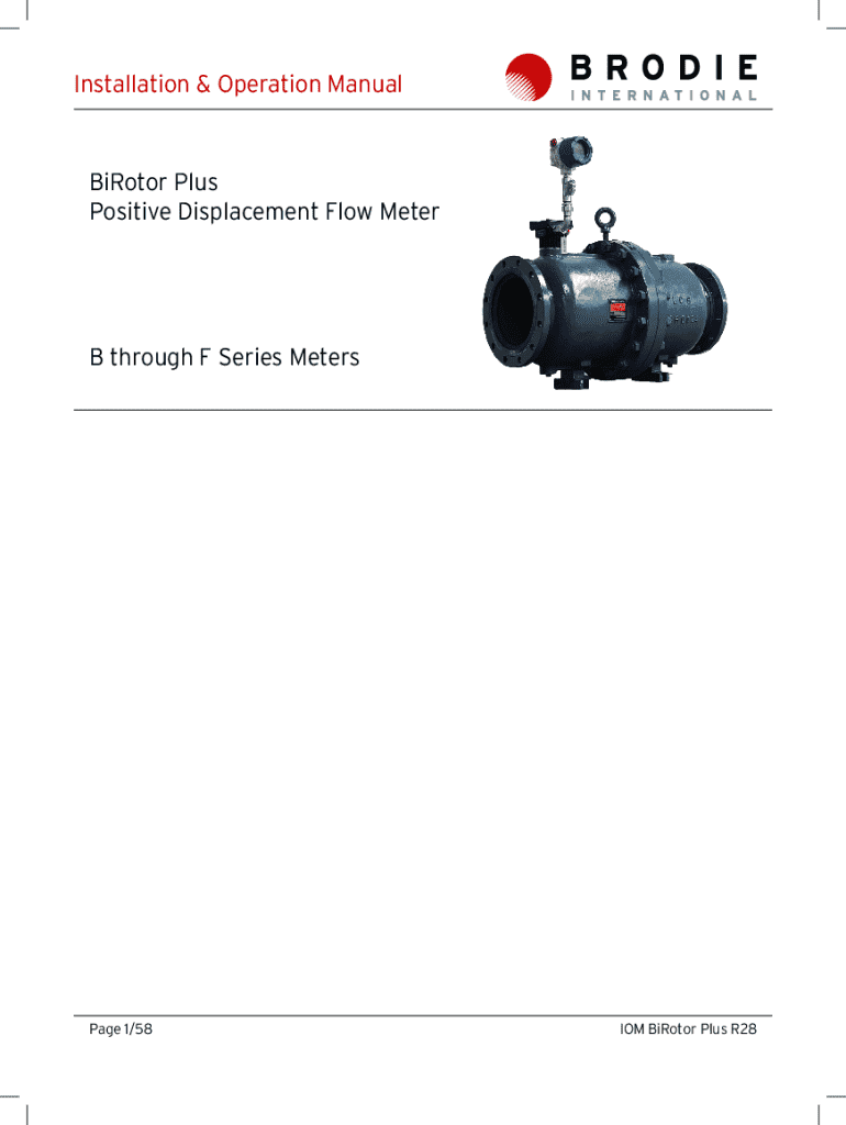 Installation & Operation ManualBiRotor Plus Positive Displacement Flow MeterB through F Series MetersPage 1/58IOM BiRotor Plus R28Table of Contents 1 Read Me First ..............................................................................................................................3