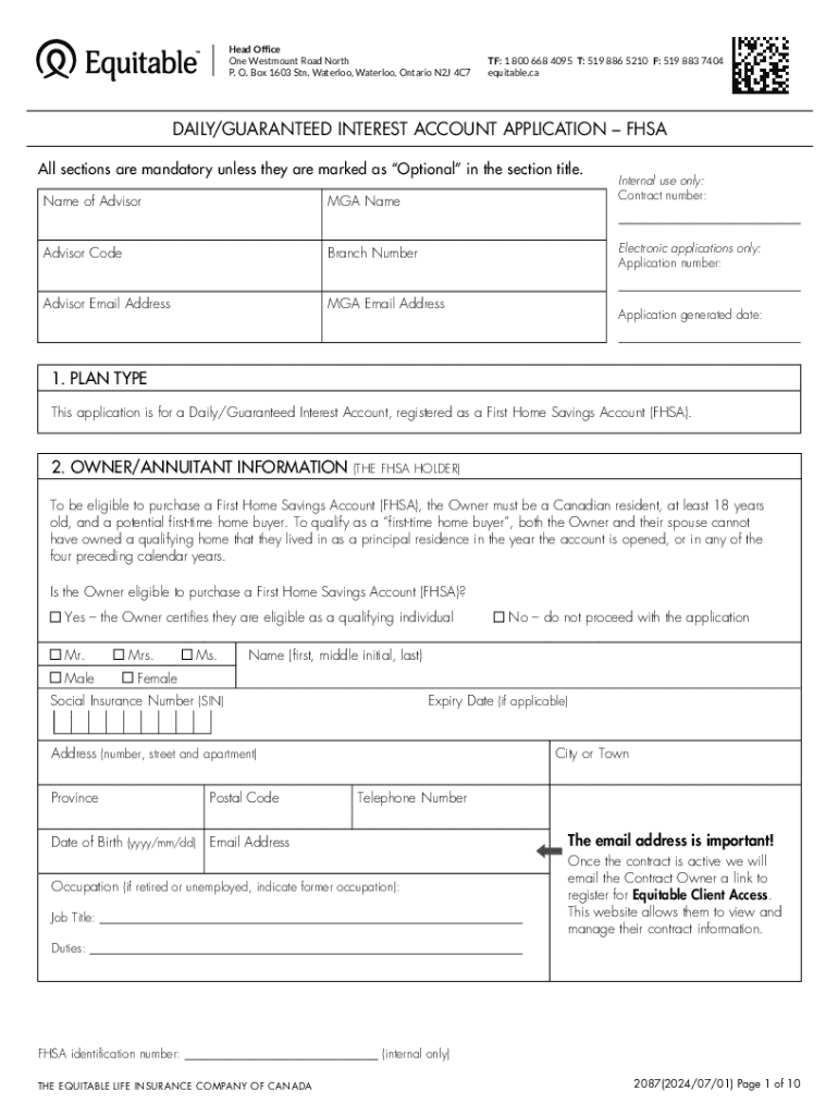 Daily/Guaranteed Interest Account Application First Home Savings Account (FHSA) Savings and RetirementAs an Equitable contract Owner you will have instant access to your contract information through