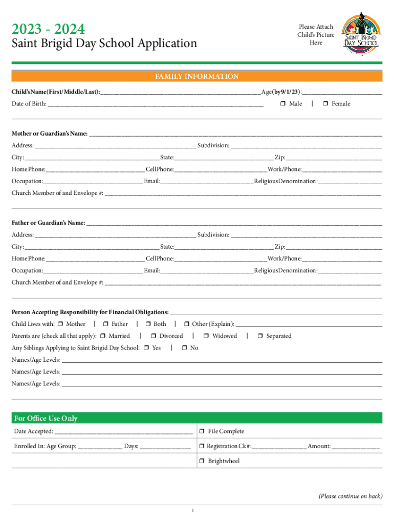 Saint Brigid Day School is not the form you're looking for?Search for another form here.
