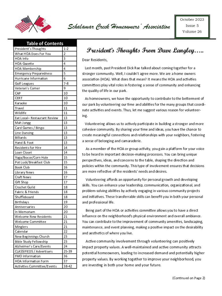 October 2023Schalamar Creek Homeowners Association