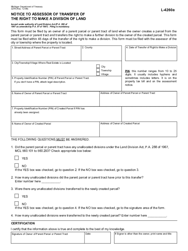 Thomas Township Land Division Application A fee of $50.00Approval of a division of land is required before it is sold, when a new parcel is less than 40 acres and not just a property line adjustment