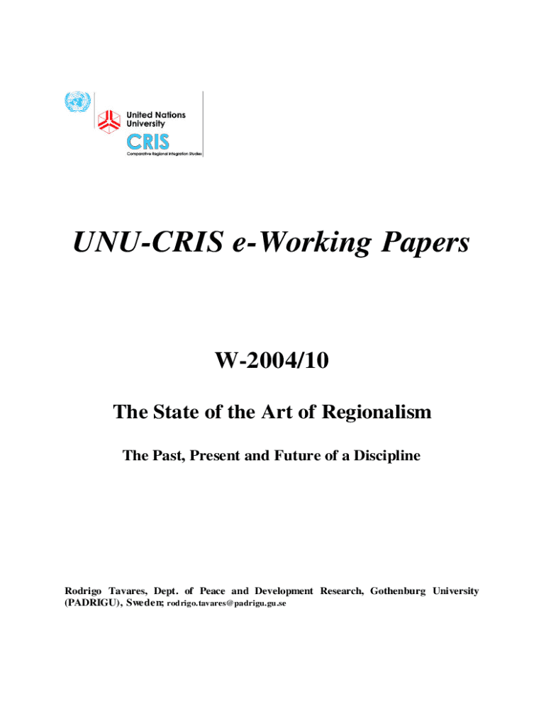 Get the free The State of the Art of Regionalism. The Past, Present and ...