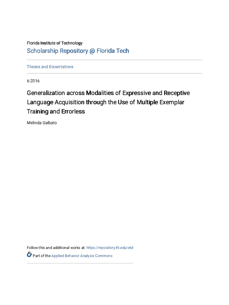 Florida Institute of TechnologyScholarship Repository @ Florida Tech Theses and Dissertations 62016Generalization across Modalities of Expressive and Receptive Language Acquisition through the Use
