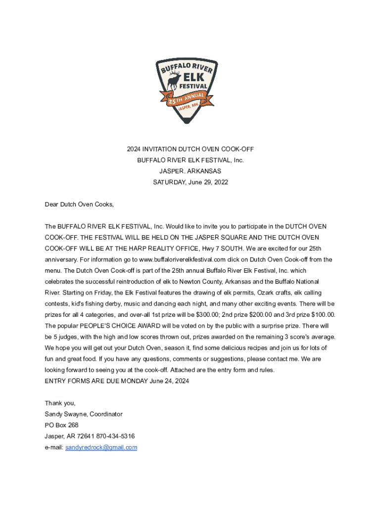The BUFFALO RIVER ELK FESTIVAL, Inc. Would like to invite you to