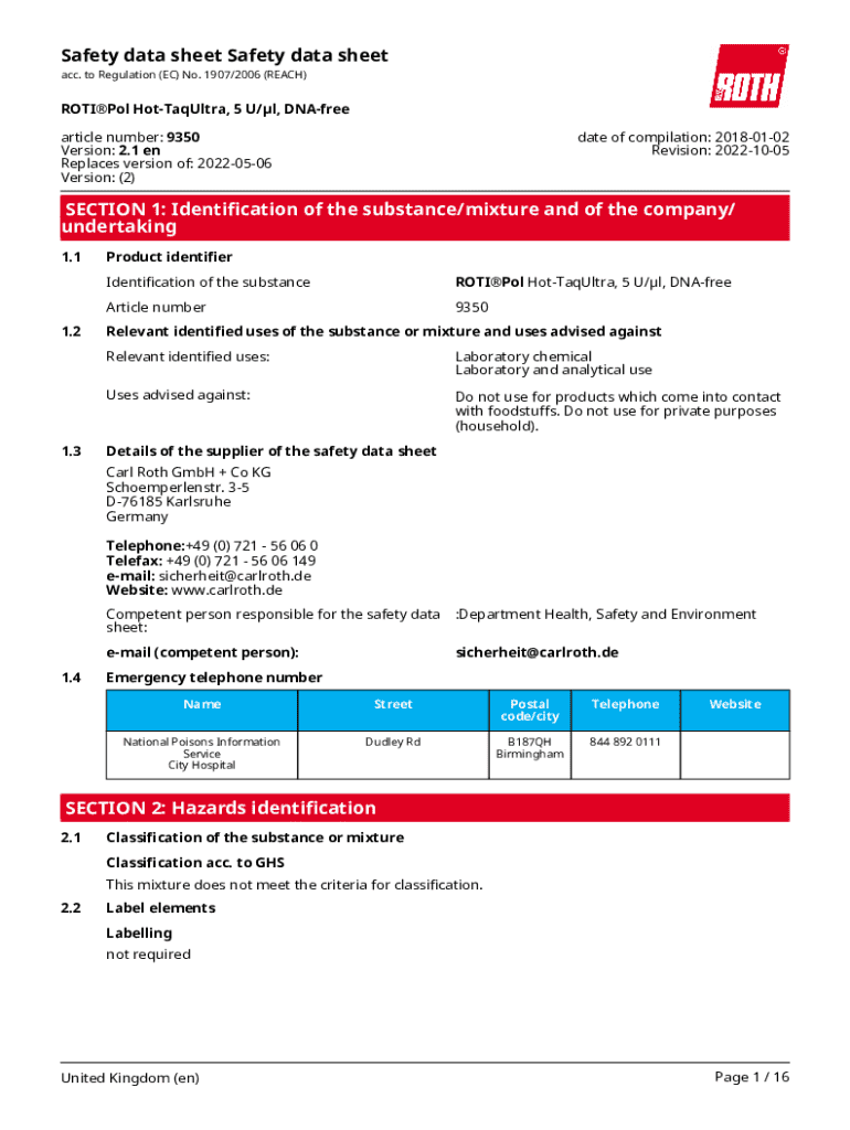 Safety Data Sheet Hot-Taqultra is not the form you're looking for?Search for another form here.