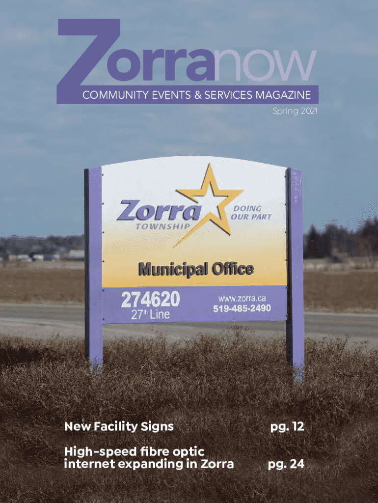 COMMUNITY EVENTS & SERVICES MAGAZINE Spring 2021COMMUNITY EVENTS & SERVICES MAGAZINECOMMUNITY EVENTS & SERVICES MAGAZINENew Facility Signspg. 12Highspeed fibre optic internet expanding in Zorrapg.
