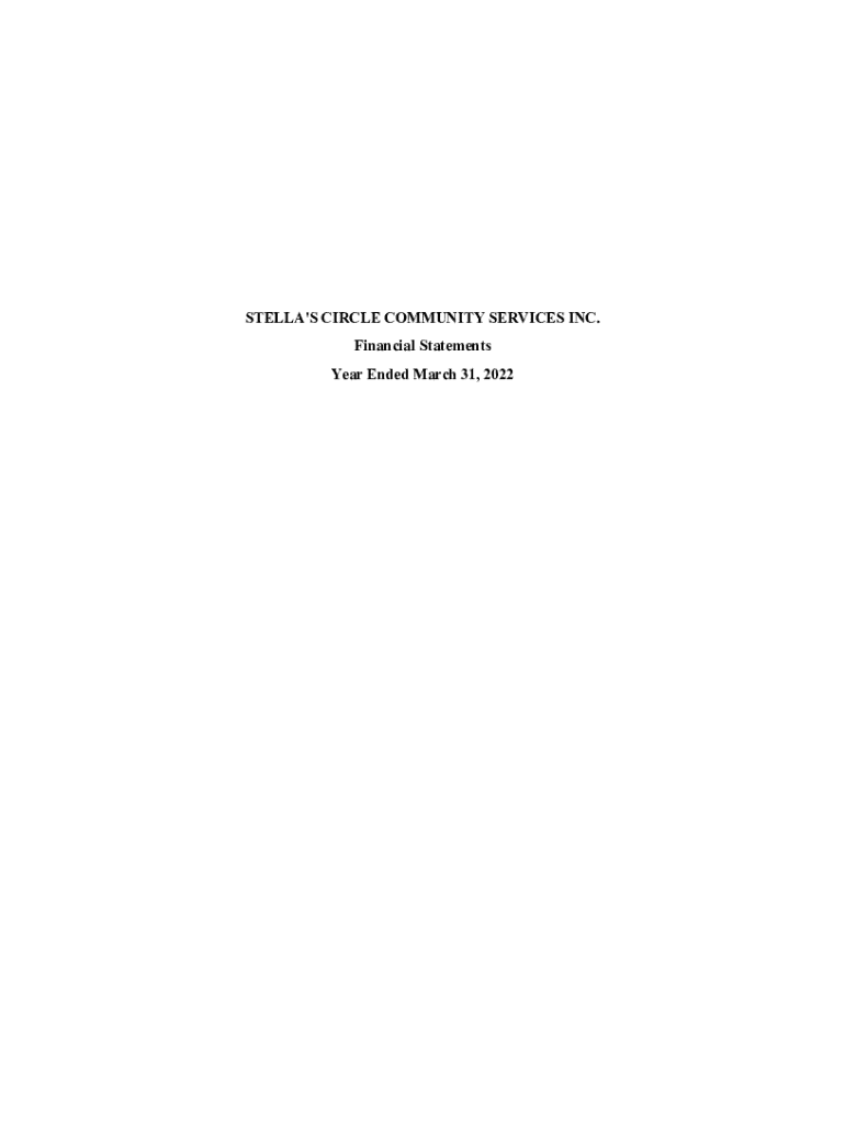 Comprehensive financial statements for Stella\'s Circle Community Services Inc. detailing their financial position and results for the year ended March 31, 2022.