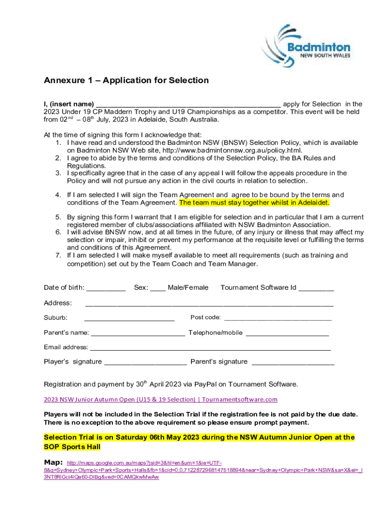 Get the free Application for Selection