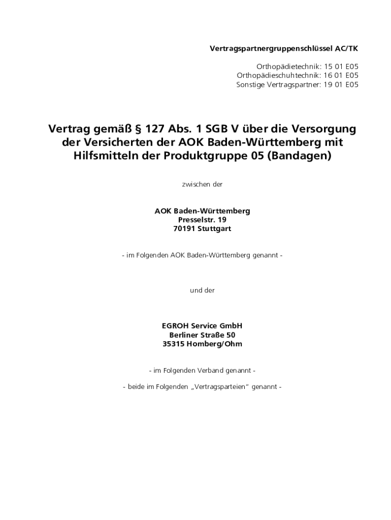 Onstage Vertragspartner: 19 01 E05Vertrag gem 127 Abs. 1 SGB V BER die Overstrung