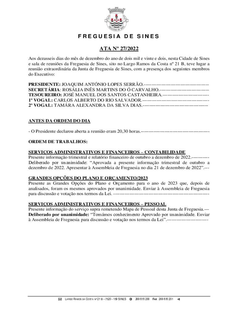 e sale de reunites the Freesia de Sines, site no Largo Ramos the Costa n 21