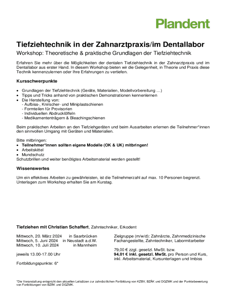 Holen Sie sich kostenlos Tiefziehtechnik - Workshop in der Zahnarztpraxis