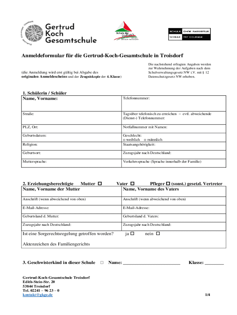 So füllen Sie anmeldeformular fr die gesamtschuledie aus