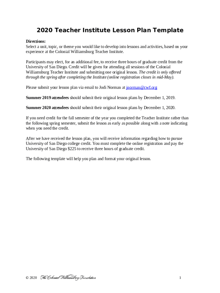 Instructions for the Teacher InstituteColonial Williamsburg Foundation form