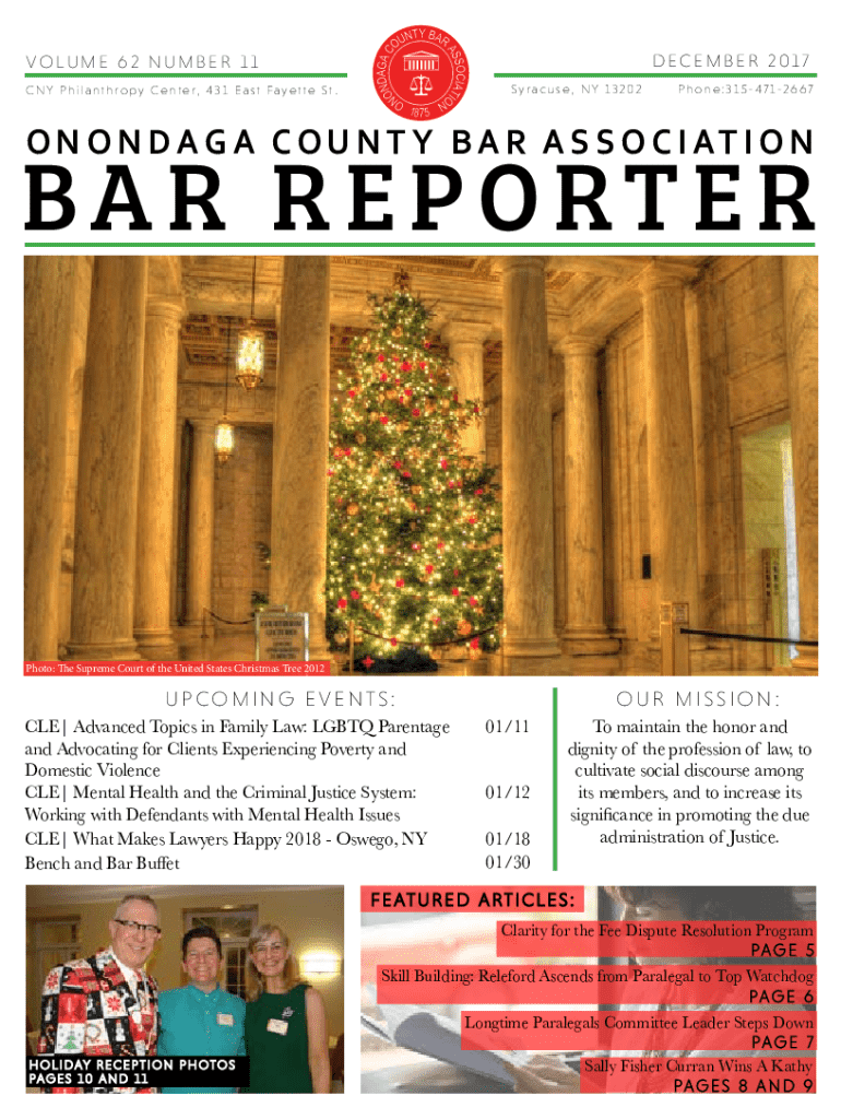 C N Y P h i l an n t h ropy Ce n the r, 4 3 1 Ea s t Fa ye t the St. Syracuse, NY 13202Phone:3154712667O N O N D A G A C O U N T Y B A R A S S O C I AT I ON BAR REPORTERPhoto: