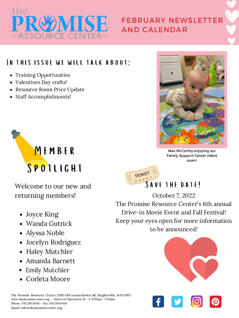 FEBRUARY NEWSLETTER AND CALENDARIn this issue we will talk about: Training Opportunities Valentines Day crafts! Resource Room Price Update Staff Accomplishments!Member Spotlight Welcome to our new