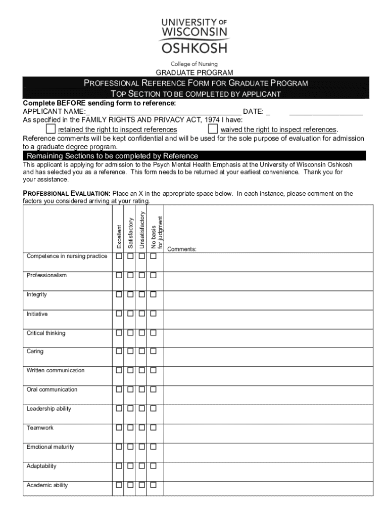 Graduate Program Professional Reference is not the form you're looking for?Search for another form here.