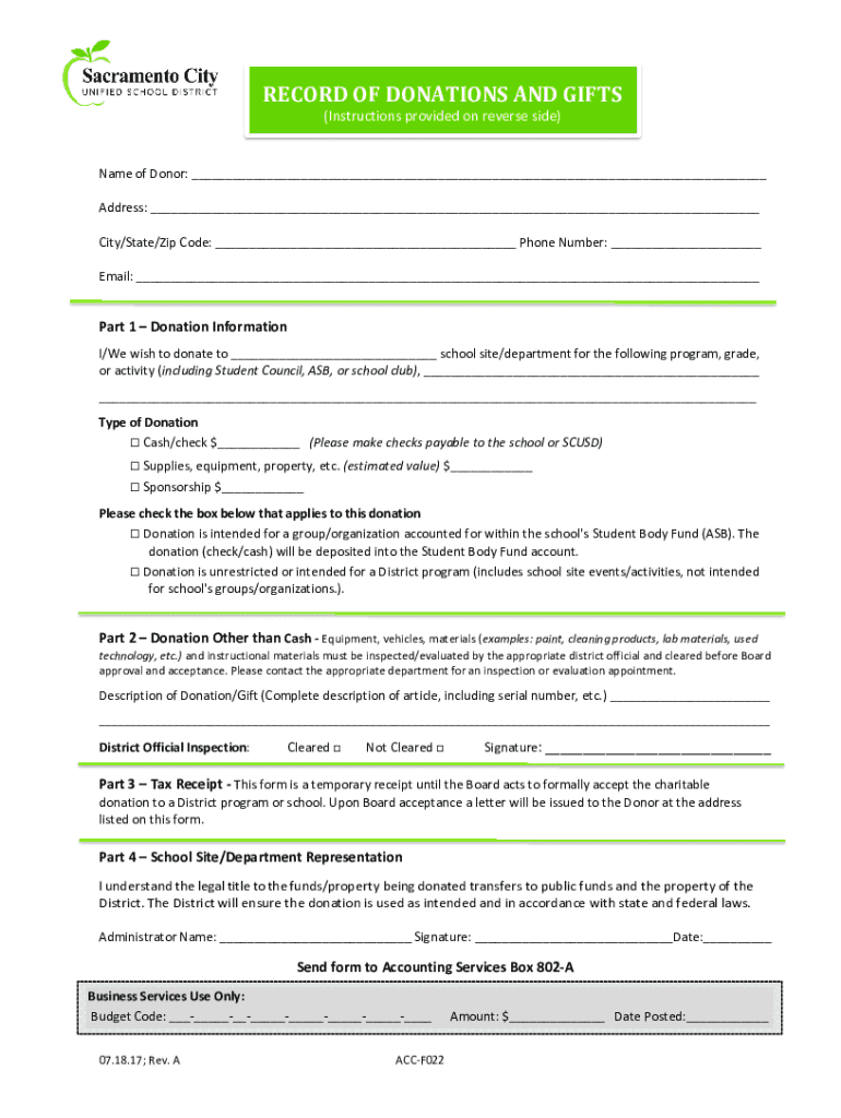Get the free Acceptance of All Grants, Gifts and Donations