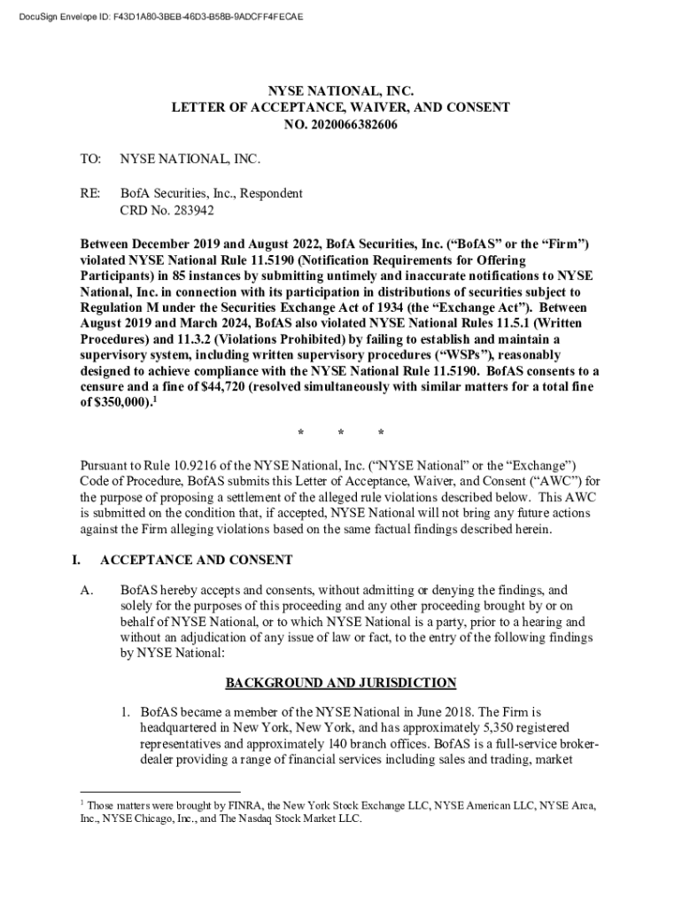 DocuSign Envelope ID: F43D1A803BEB46D3B58B9ADCFF4FECAENYSE NATIONAL, NATIONAL, INC. NYSE INC. LETTER LETTER OF OF ACCEPTANCE, ACCEPTANCE, WAIVER, WAIVER, AND AND CONSENT CONSENT NO. 2020066382606