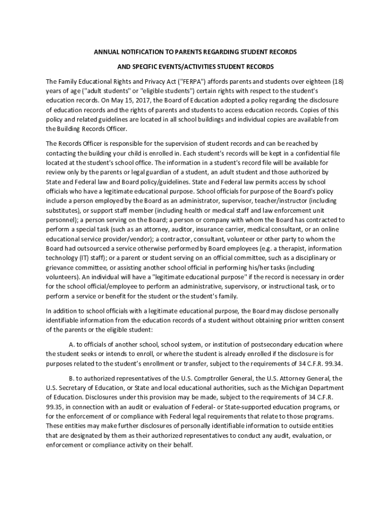 Get the free annual notification to parents regarding student records ...