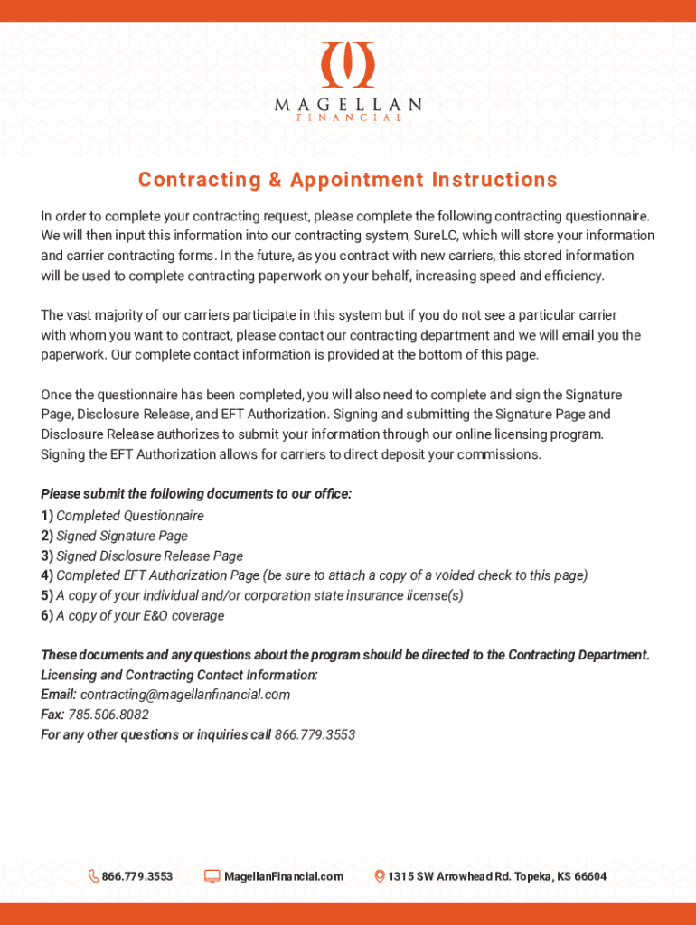 Contracting & Appointment Instructions In order to complete your contracting request, please complete the following contracting questionnaire. We will then input this information into our contracting