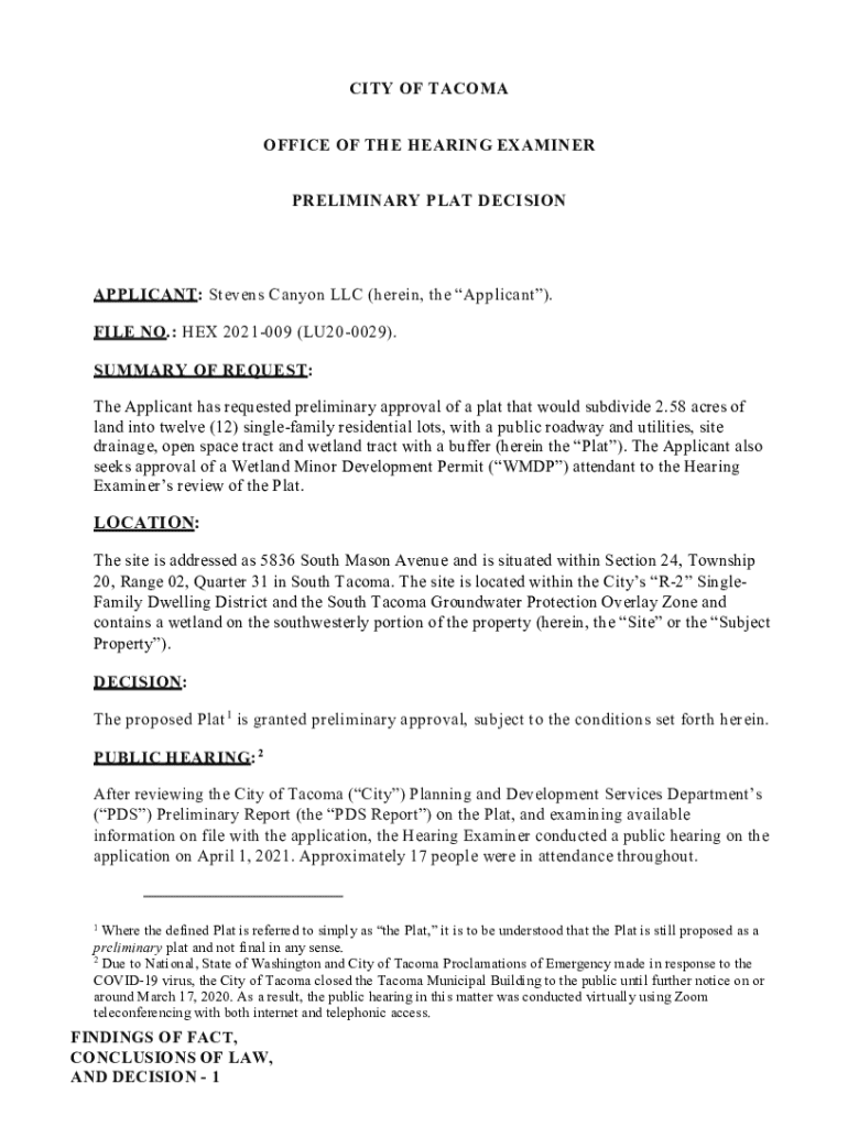 Get the free Hearing ExaminerPierce County, WA - Official Website