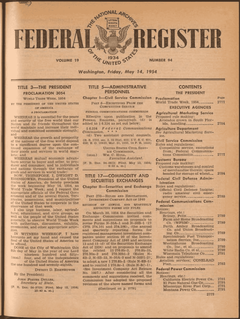 \'9 3 4VOLUME 19*NUMBER 94f/Nitro Washington, Friday, May 14, 1954TITLE 3 THE PRESIDENT