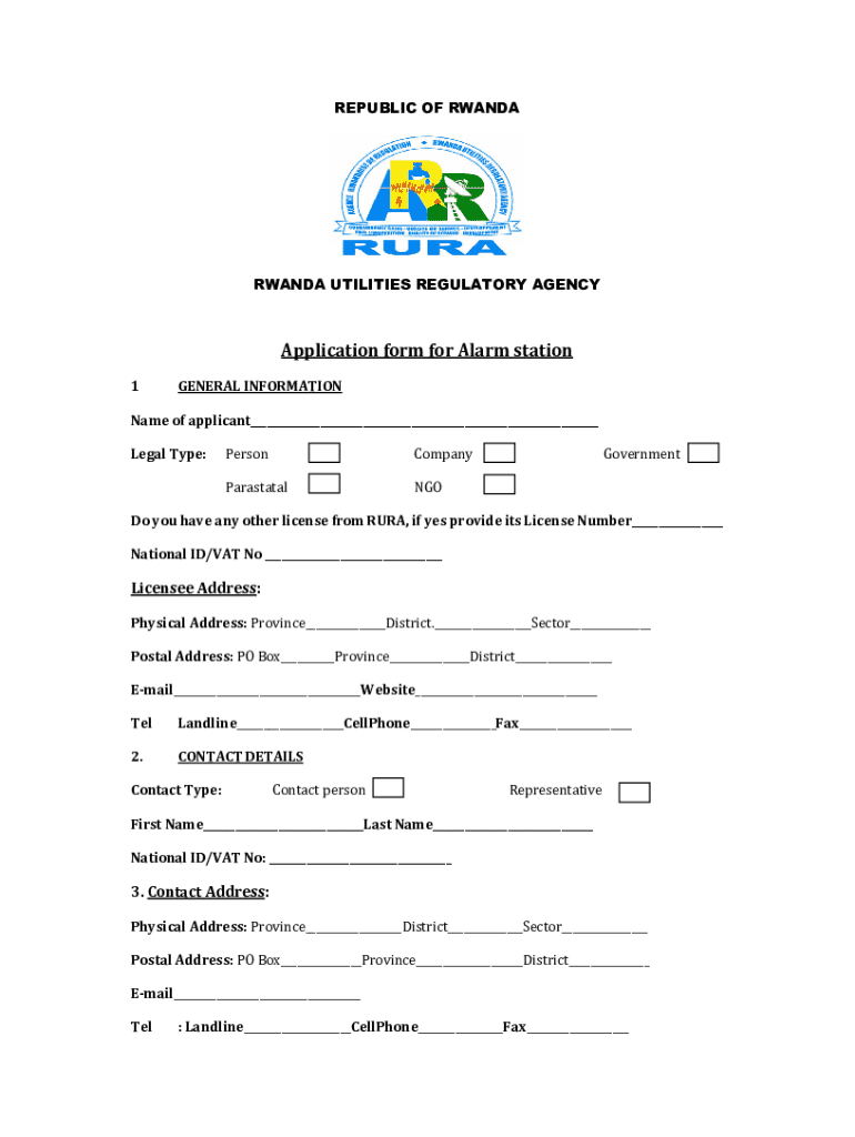 REPUBLIC OF RWANDARWANDA UTILITIES REGULATORY AGENCYApplication form for Alarm station