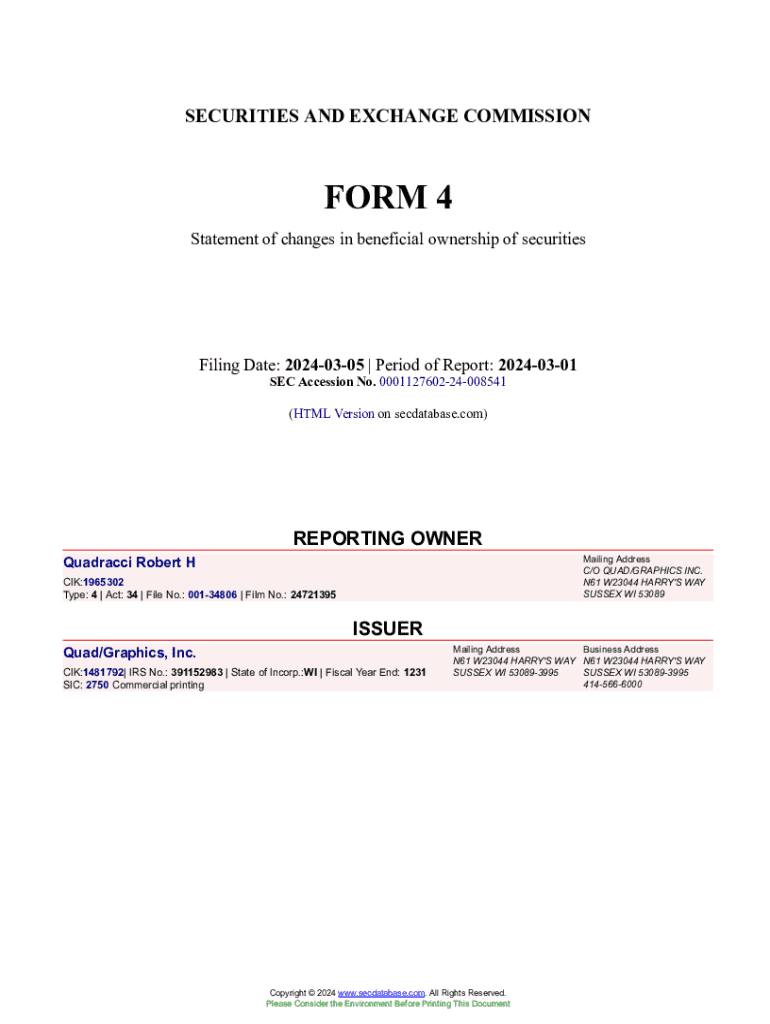 Get the free Quadracci Robert H Form 4 Filed 2024-03-05. Accession Number