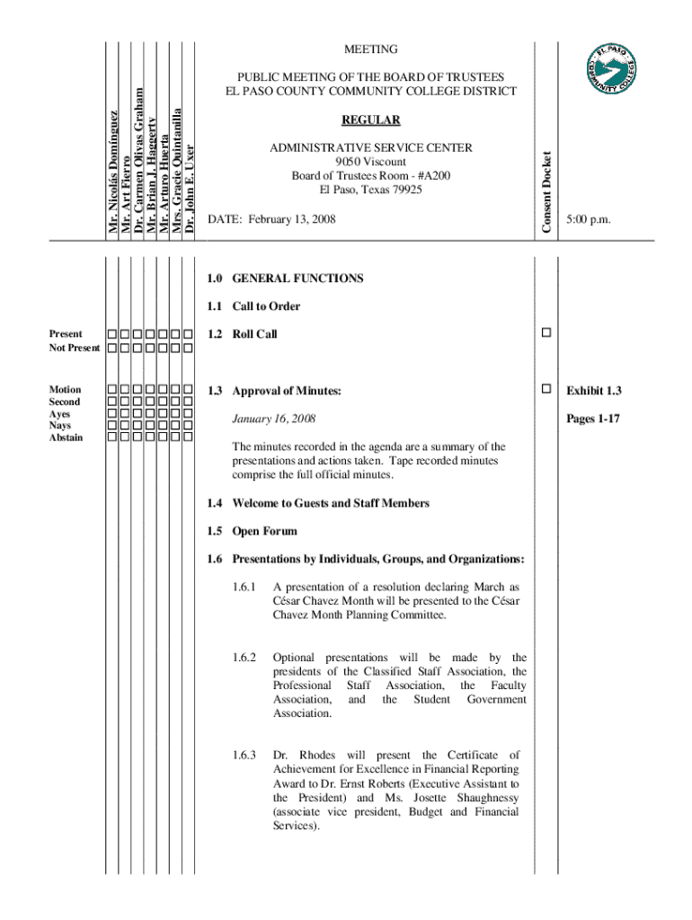 PUBLIC MEETING OF THE BOARD OF TRUSTEES