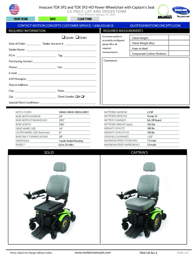 Price Effective January 15, 2024PRINT FORMSAVECLEAR RECONTACT MOTION CONCEPTS CUSTOMER SERVICE: 1.888.433.6818